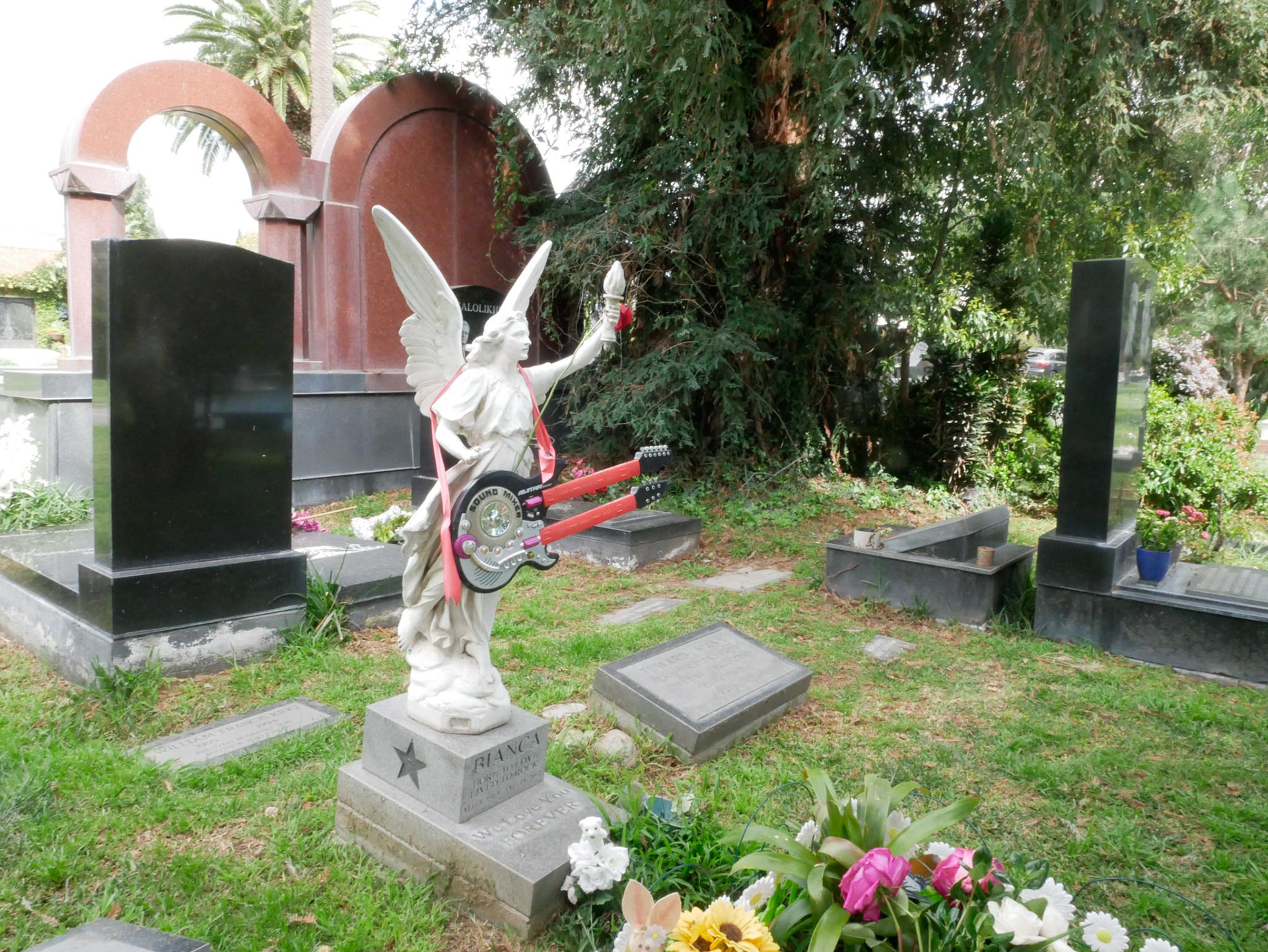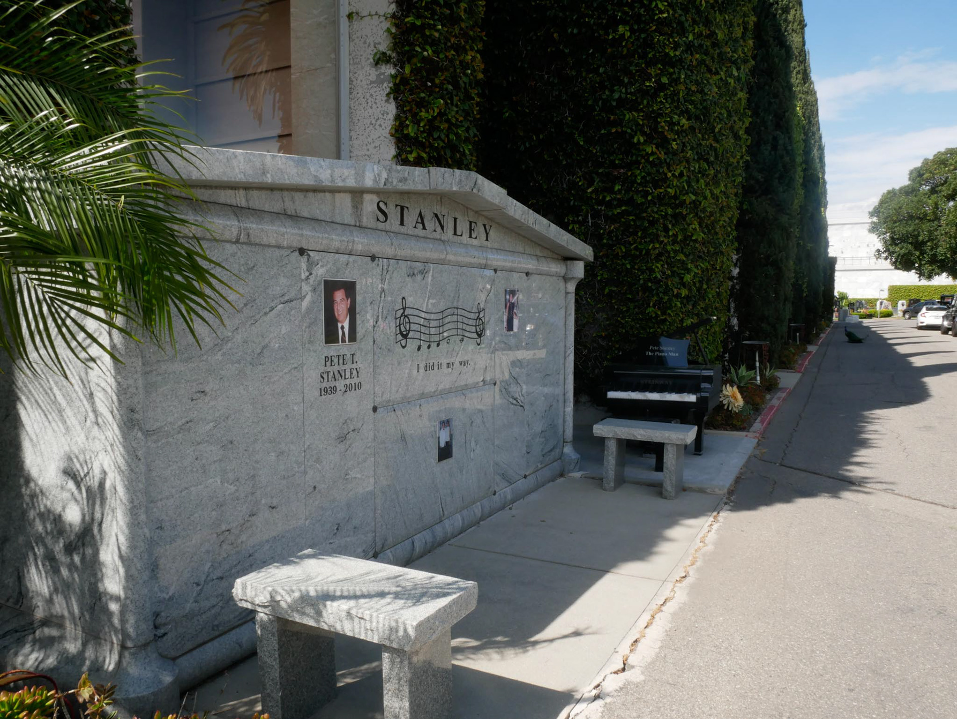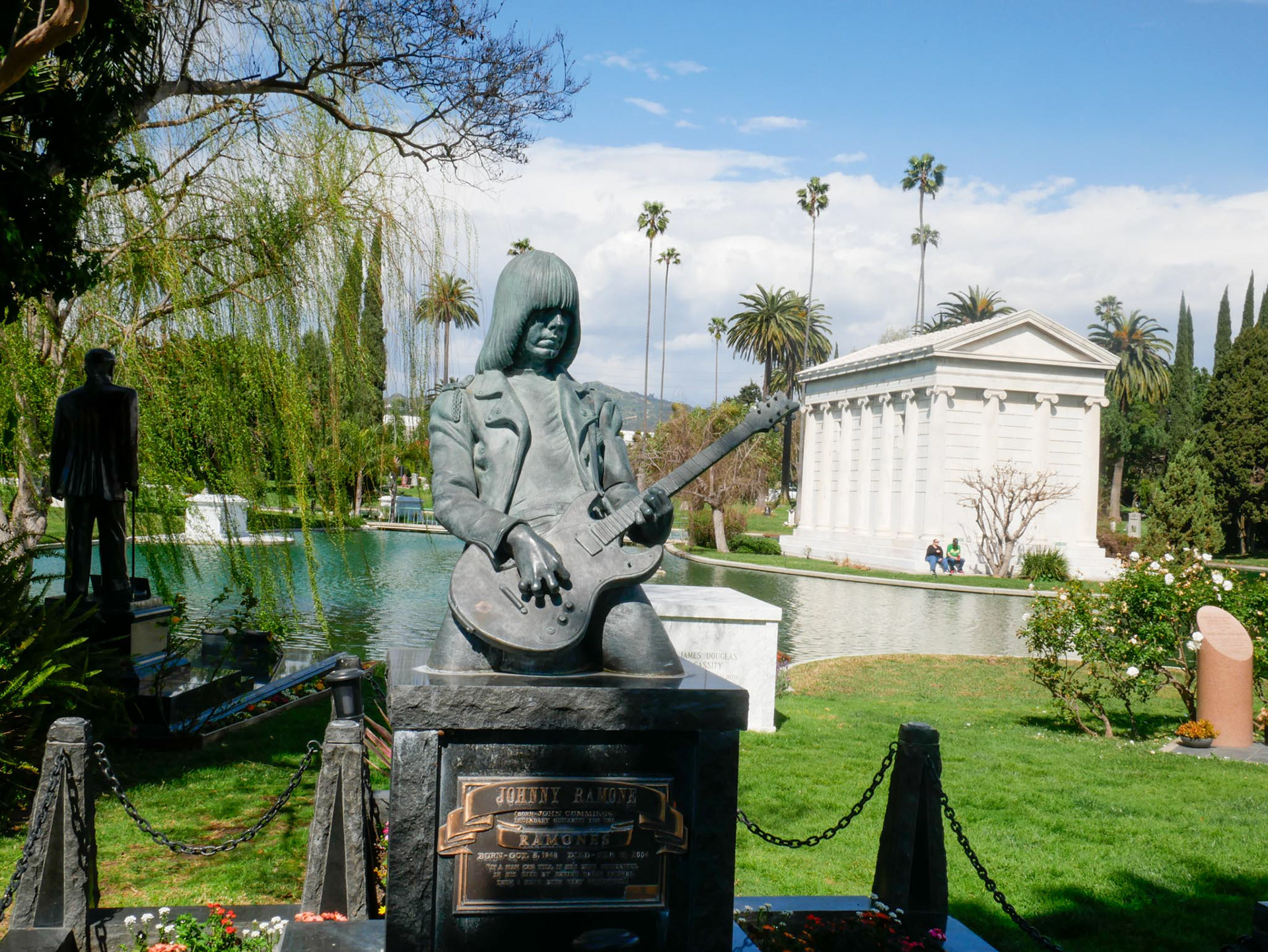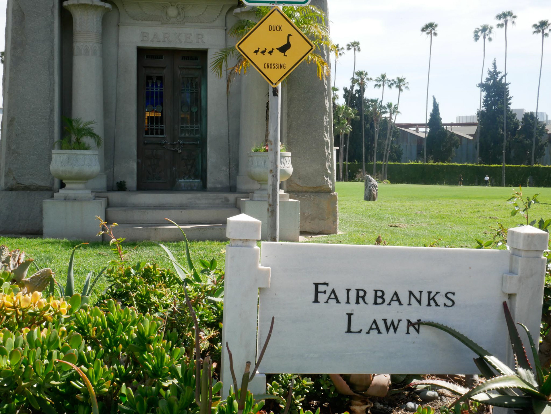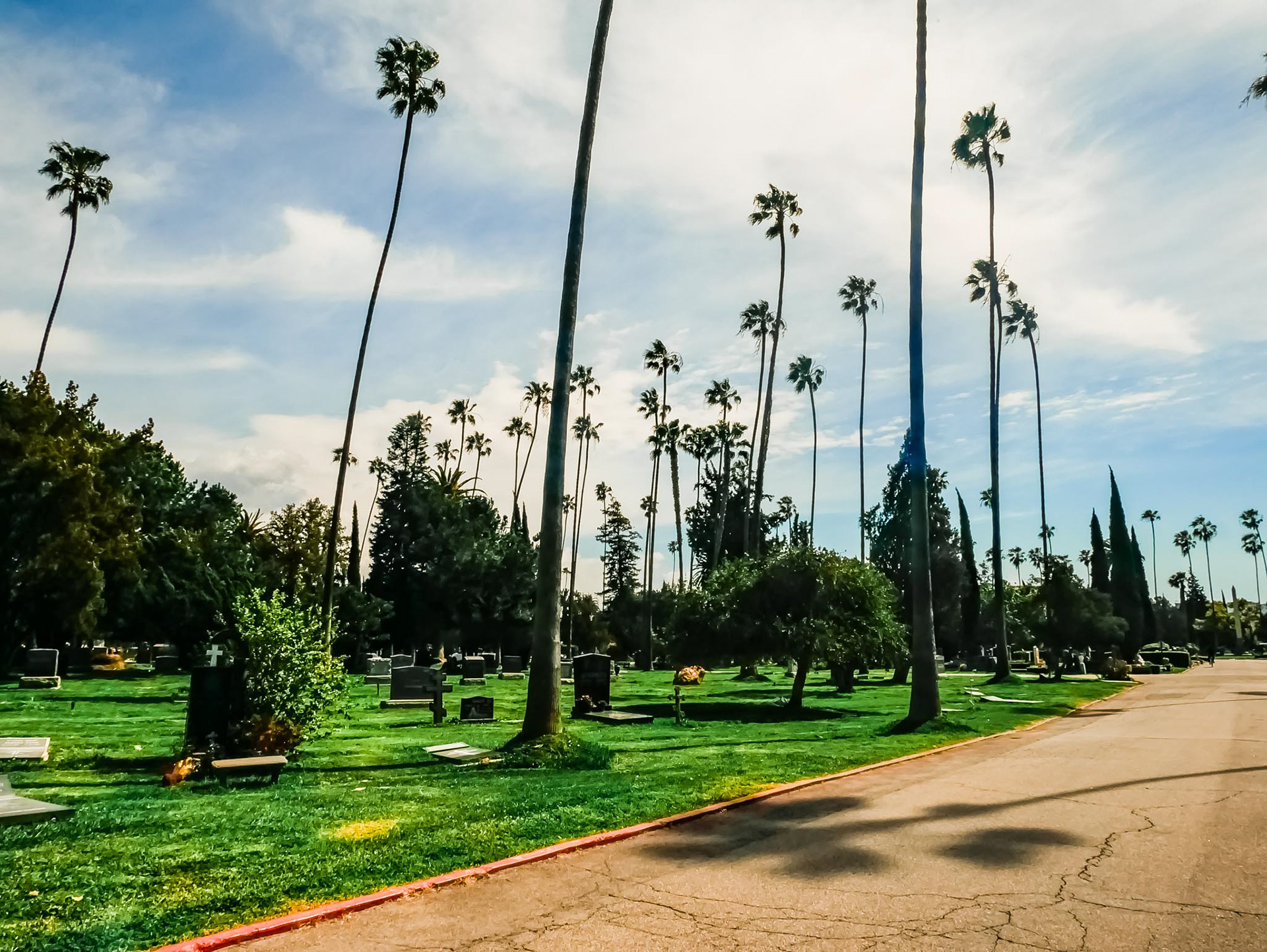 When you enter a cemetery in Hollywood, you have certain expectations, which, in my opinion, are fully met. Within sight of the “Hollywood” sign, you are greeted at the entrance by a Rolls Royce hearse. Pompous tombs, lakes, fountains, all perfectly suited to this location. Peacocks, swans, geese, squirrels, and much more make a visit here a real experience.