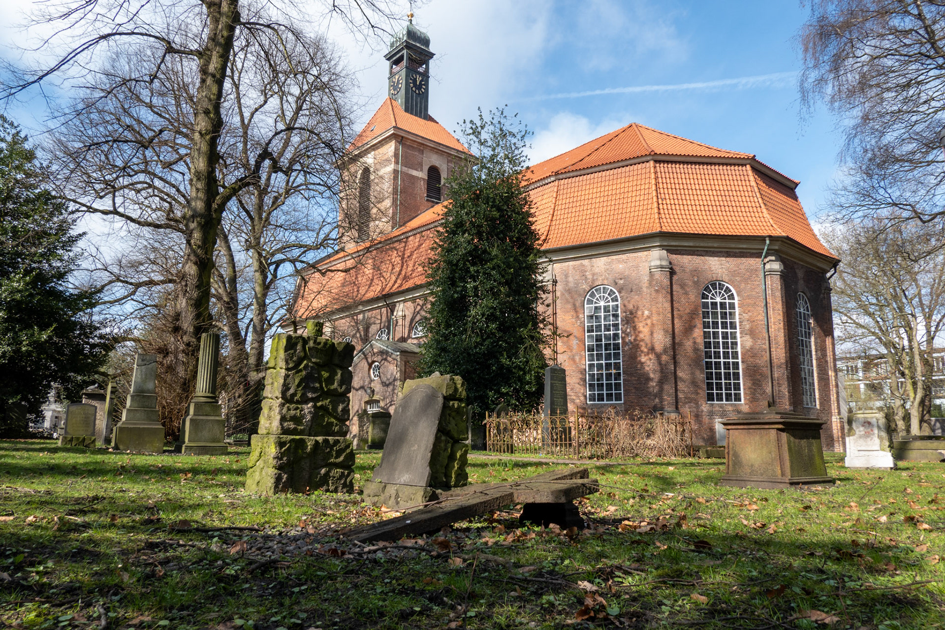The St. Christian's Church in Hamburg’s Ottensen district is a Baroque building dating from 1738. The grave of the poet Friedrich Gottlieb Klopstock has been located in the churchyard since 1803, which is why the street running south of it, Palmaille-Elbchaussee, was renamed Klopstockstraße in 1846 for a stretch of about 270 meters, and the name Klopstockkirche has since become common for the church as well.