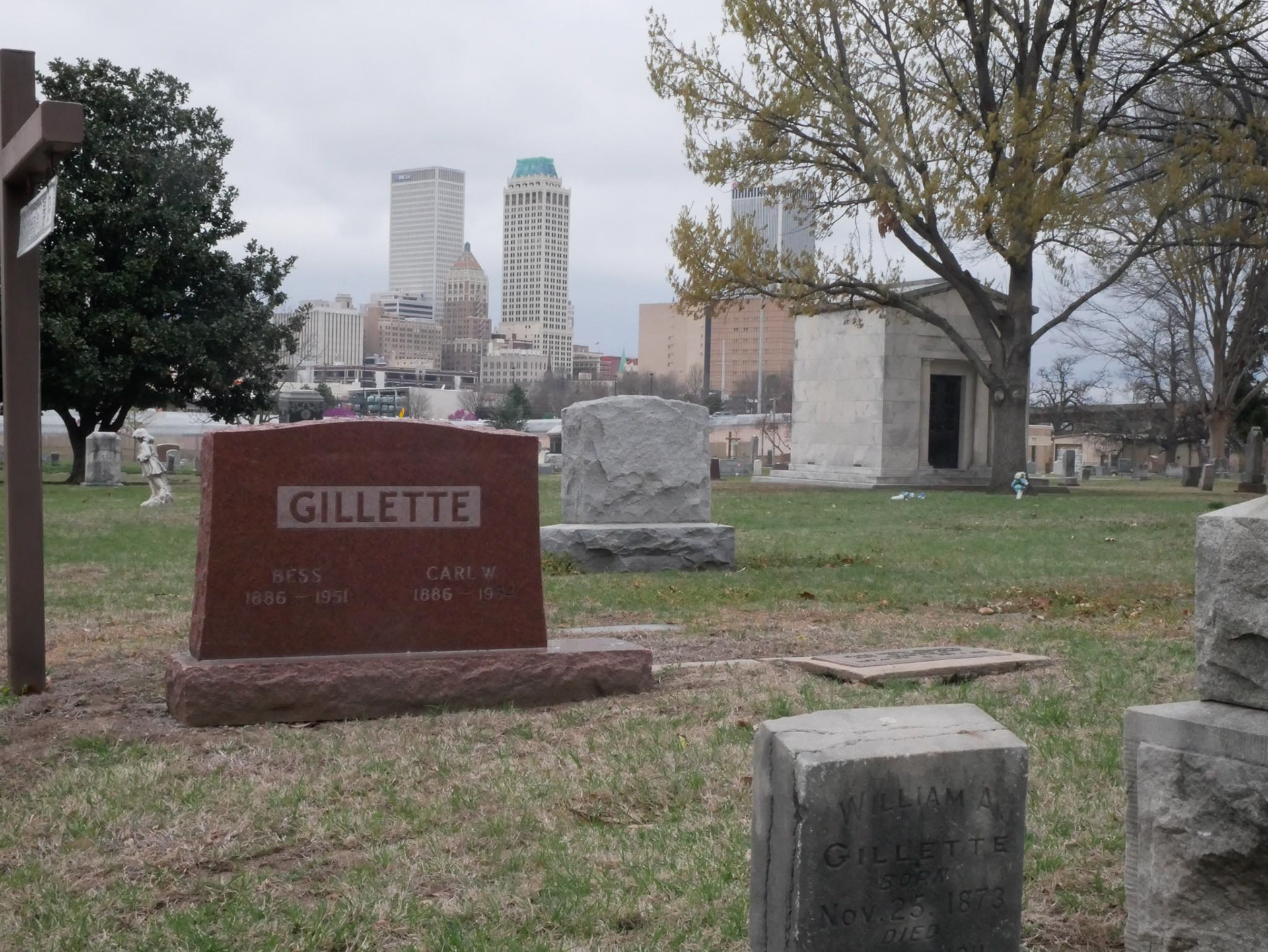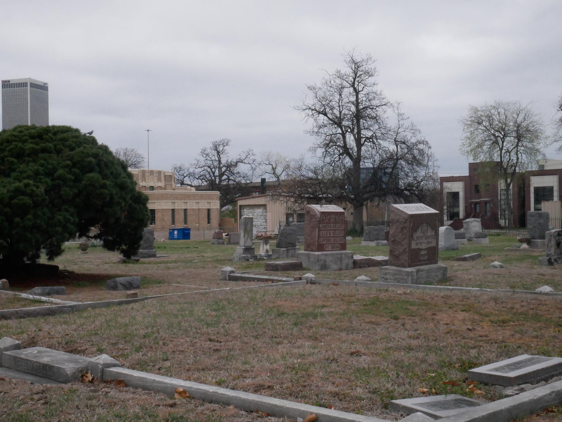 The cemetery is the oldest surviving cemetery in Tulsa, Oklahoma. It was founded in 1882 and taken over by Tulsa in 1906. It is a beautiful, typical American cemetery, but there are no famous people buried there.
